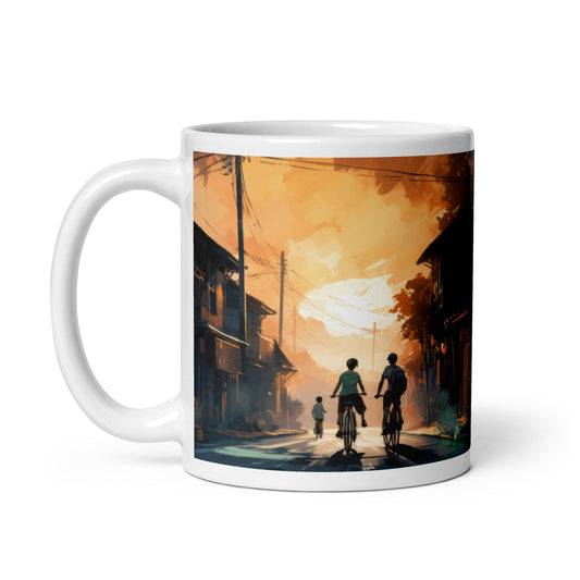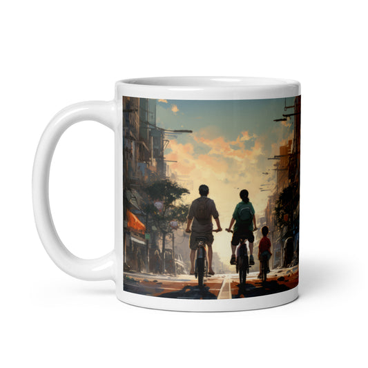 Family Ride Through Town Cycling Mug